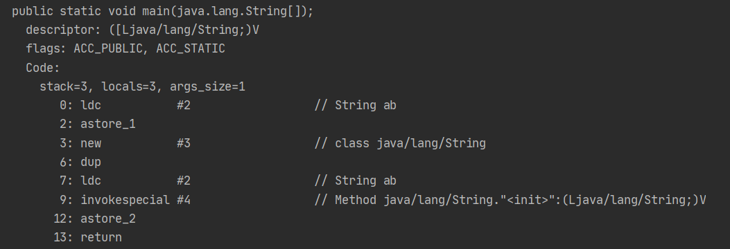 首先s1="ab"在常量池中创建了ab对象,存放在常量池的#2位置里,这个时候new String就只在堆中创建了一个String对象,常量池中因为已经有了,就不会再创建了。